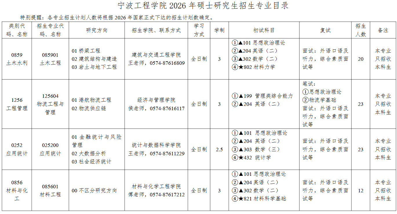 专业代码、名称及研究方向招生 计划考试 科目备注310卓越工程师学院 290125602(专业学位)项目管理270①199管理类综合能力