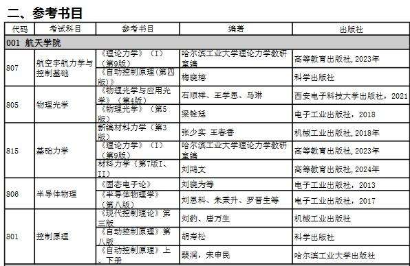 哈尔滨工业大学2026年硕士研究生初试科目参考书目
