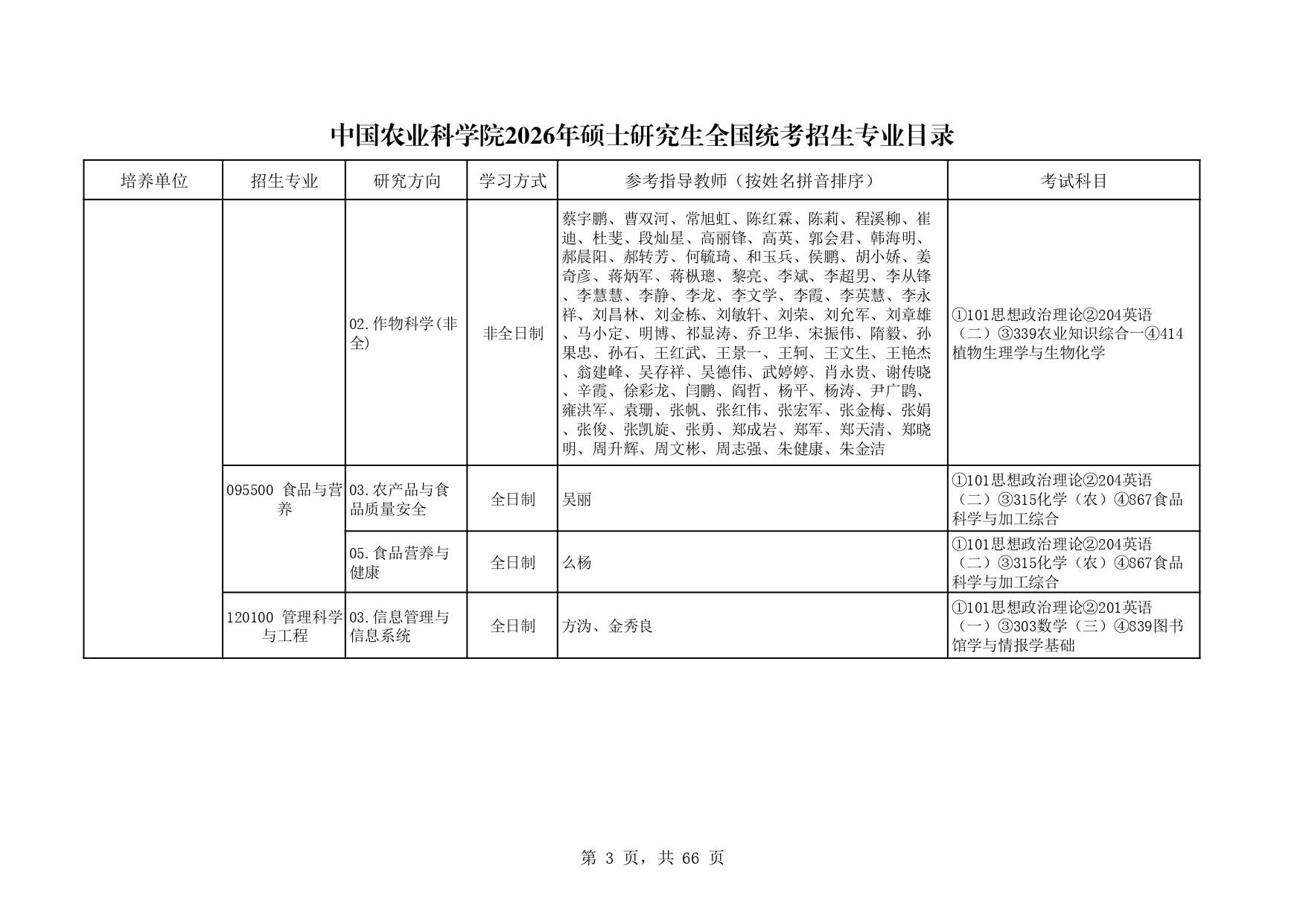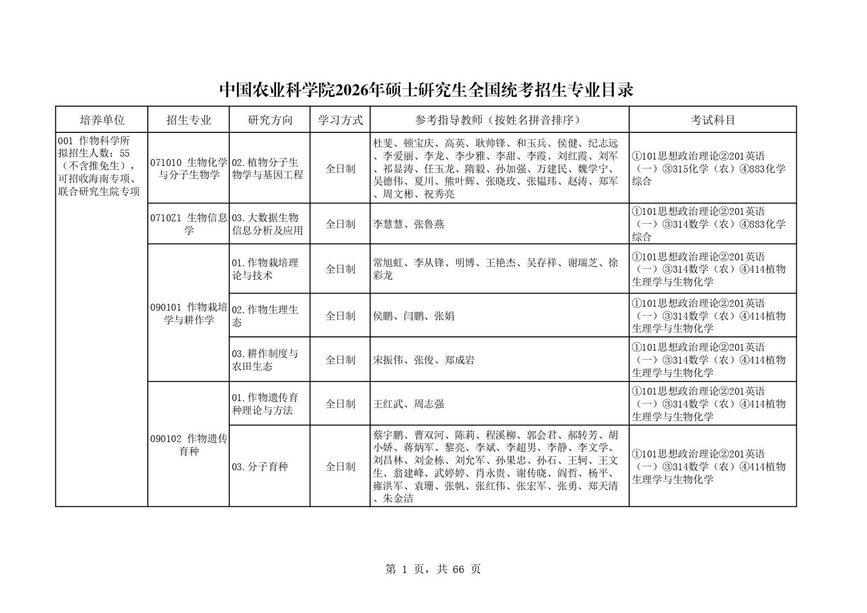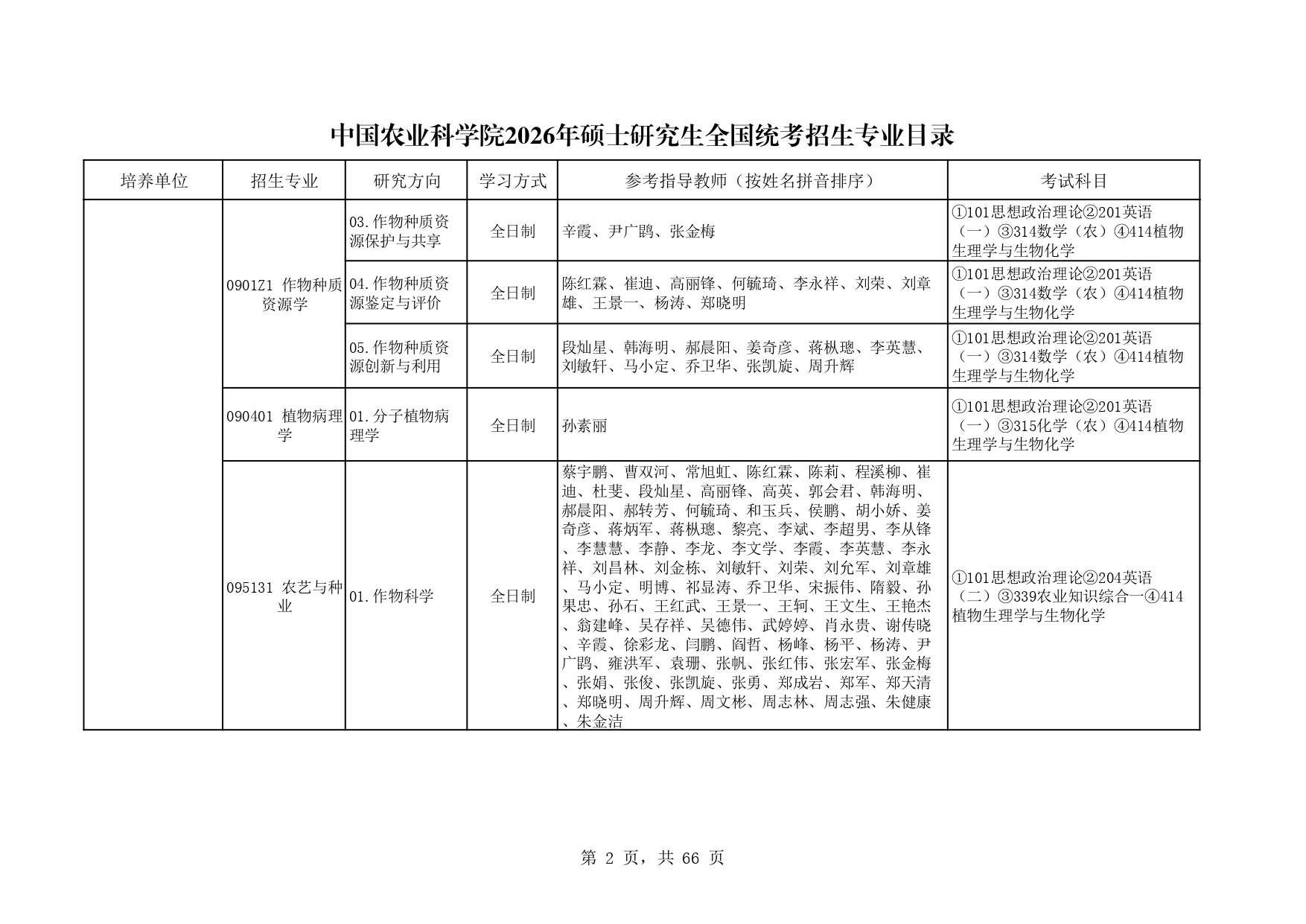 中国农业科学院作物科学所2026年研究生招生专业目录