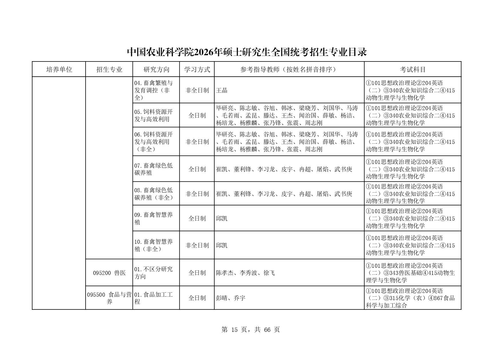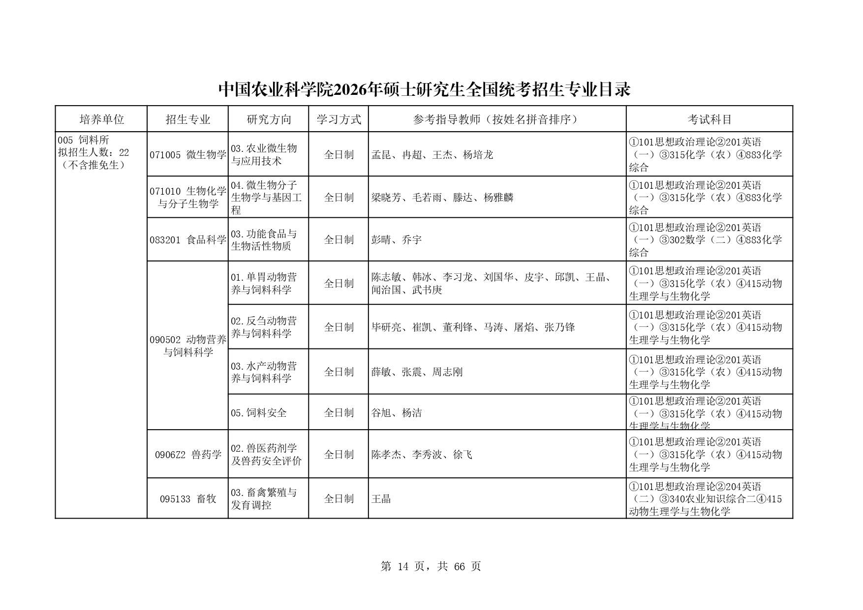 中国农业科学院饲料所2026年研究生招生专业目录