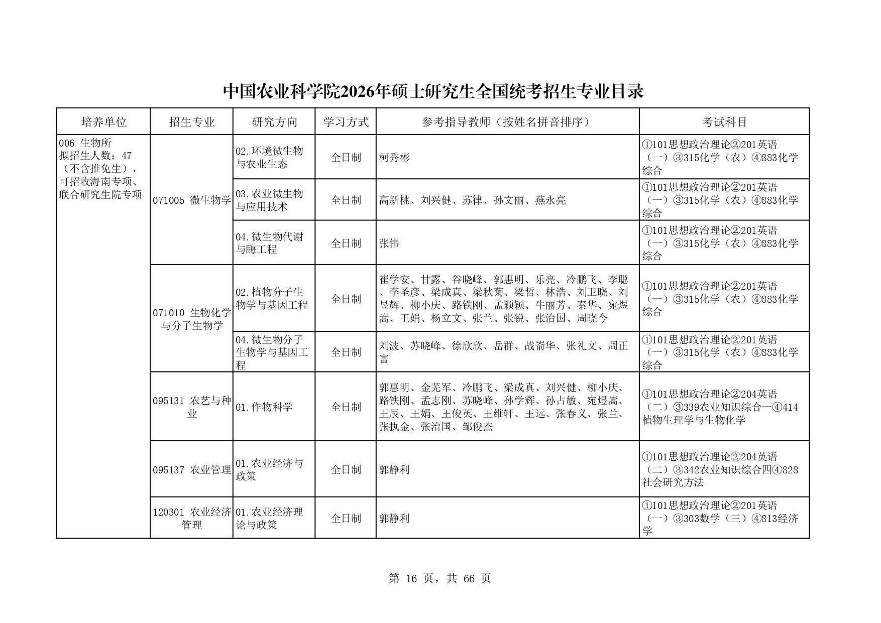 中国农业科学院生物所2026年研究生招生专业目录