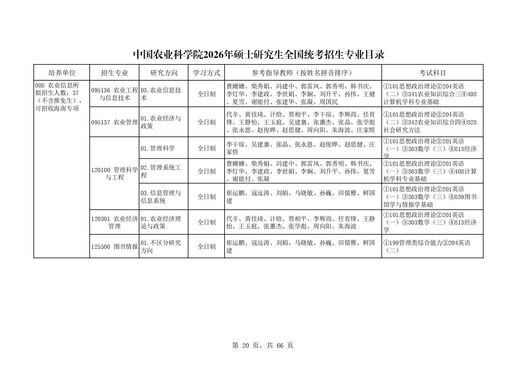 中国农业科学院农业信息所2026年研究生招生专业目录