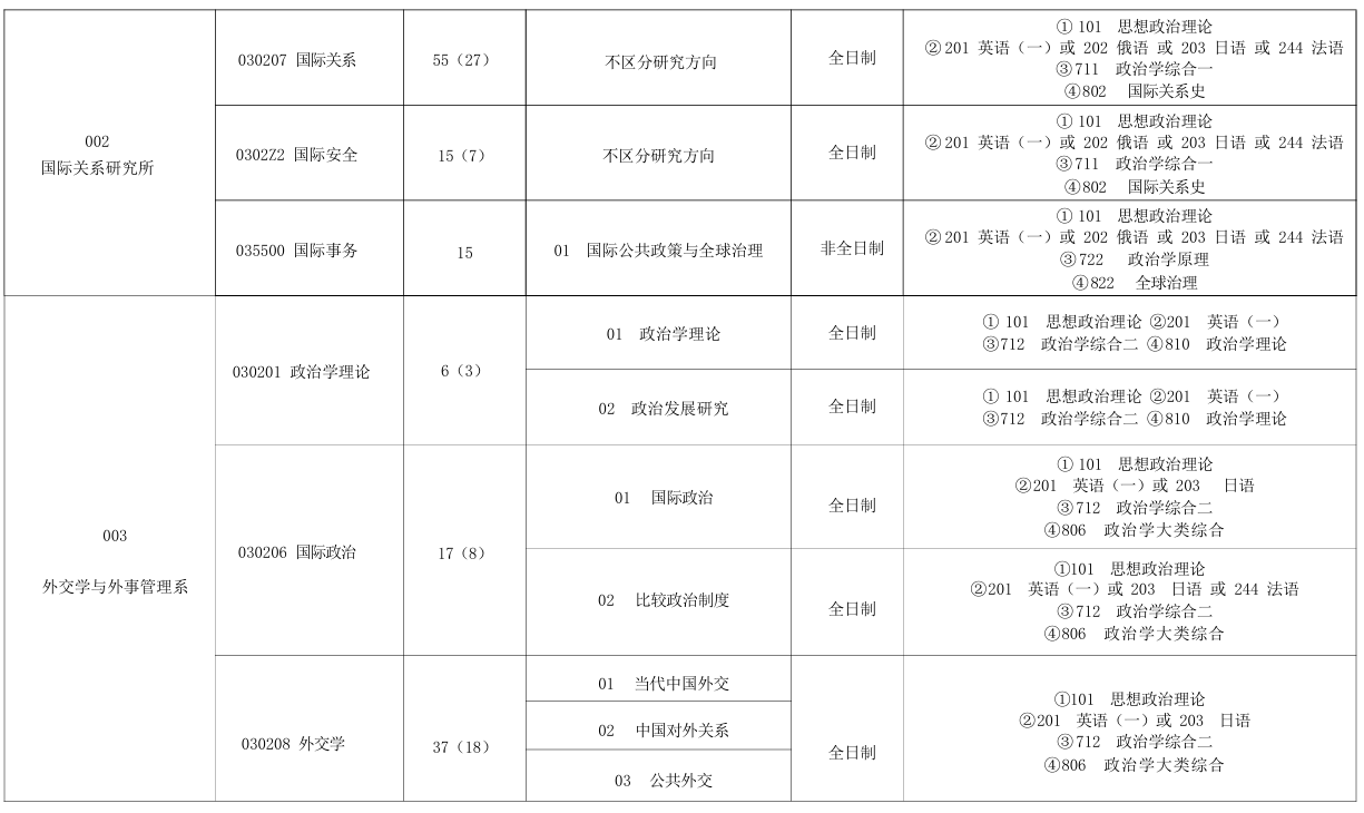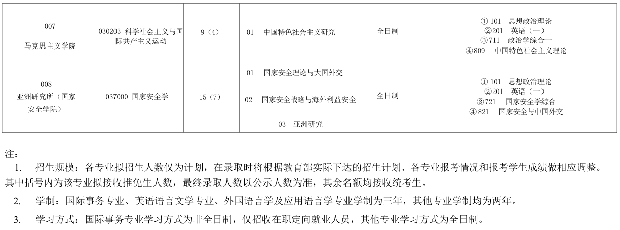 学院专业研究方向考试科目学位类型学习形式招生计划(含推免)备注001哲学与宗教学学院010100哲学00不区分研究方向①101思想政治理论②201