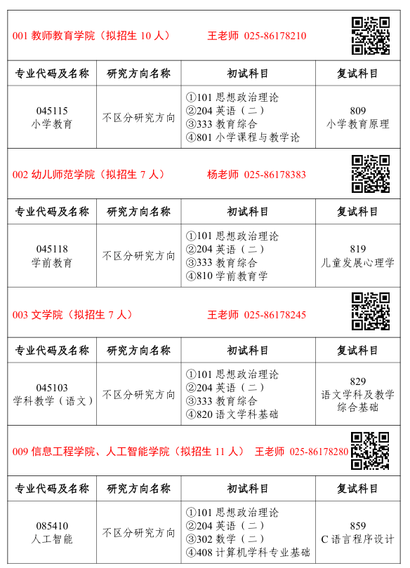 学院专业学位类型研究方向学习方式学制拟招生人数初试科目001鲁迅人文学院045103学科教学(语文)专业学位不区分研究方向全日制3年17①101