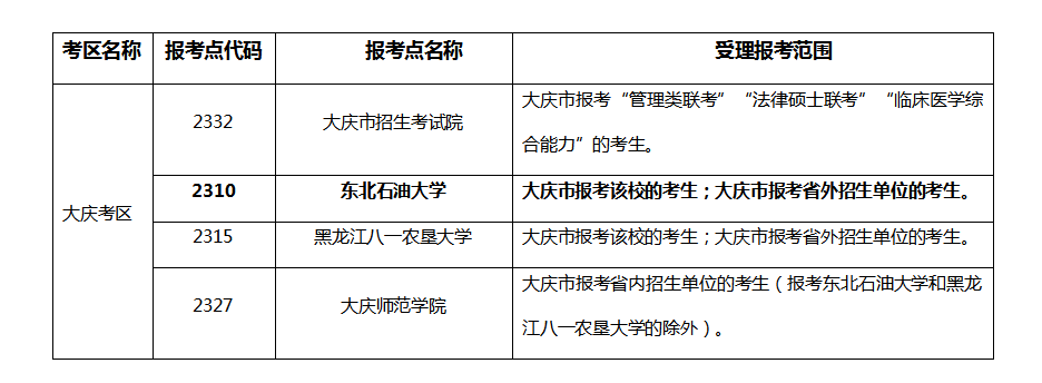 (1)大庆市报考东北石油大学(除MBA、MPAcc外其他专业)的考生;