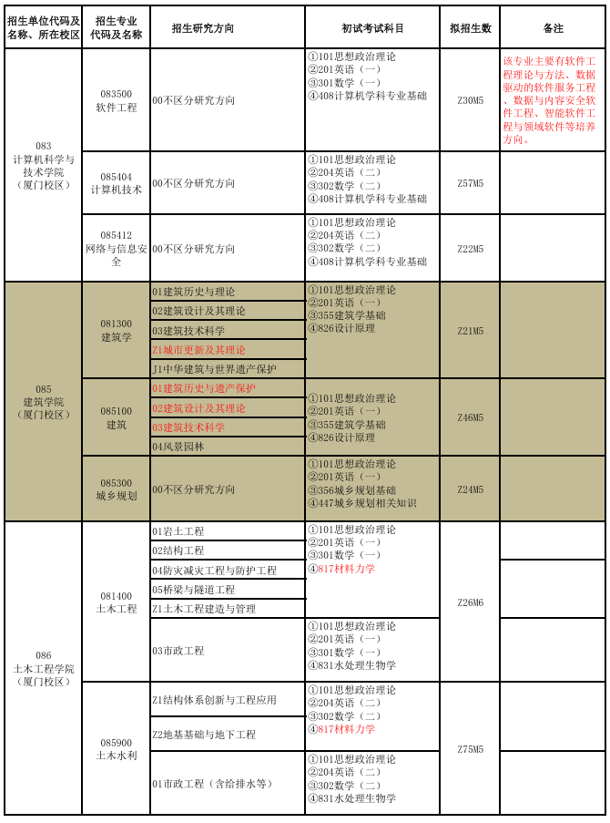 专业研究方向考试科目专业研究方向备注085先进制造学院(拟招收243人)085401新一代电子信息技术(含量子技术等)(专业学位)01智能信息处
