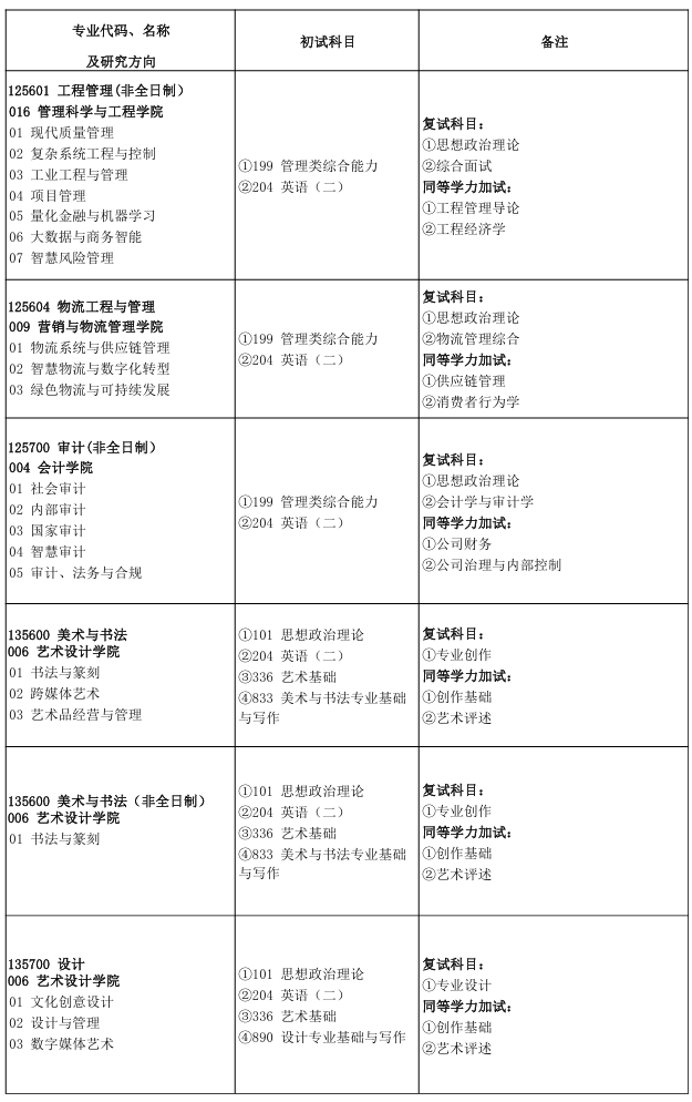 南京艺术学院2026年研究生招生专业目录(非全日制)