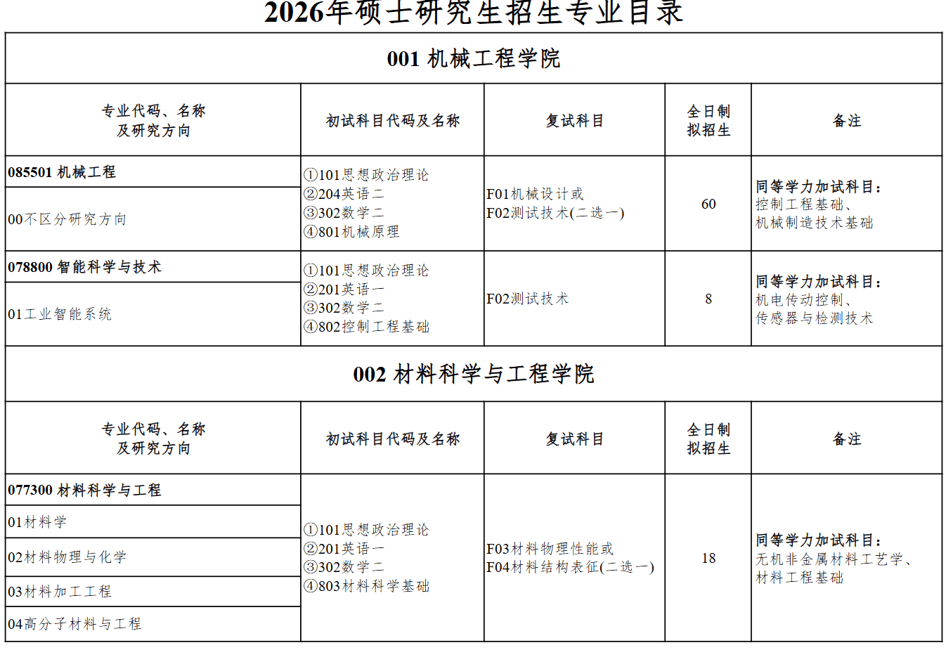 北京航空航天大学大科学装置研究院2026年研究生招生专业目录学院代码及名称:054大科学装置研究院专业代码及名称:080400仪器科学与技术(