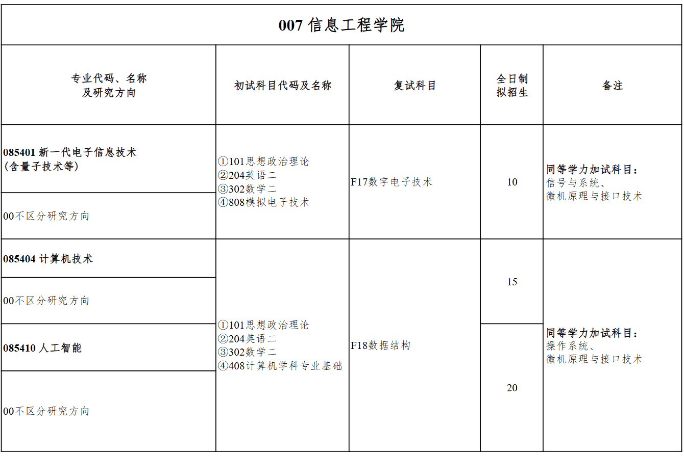 北京航空航天大学杭州国际创新研究院2026年研究生招生专业目录学院代码及名称:057杭州国际创新研究院专业代码及名称:085400电子信息(专