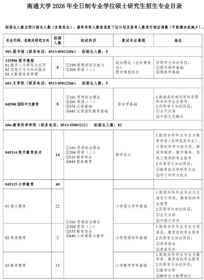 专业代码、名称及研究方向人数考 试 科 目备注108护理学院41054护理(专业学位) 01(非全日制)健康与慢病管理学 02(非
