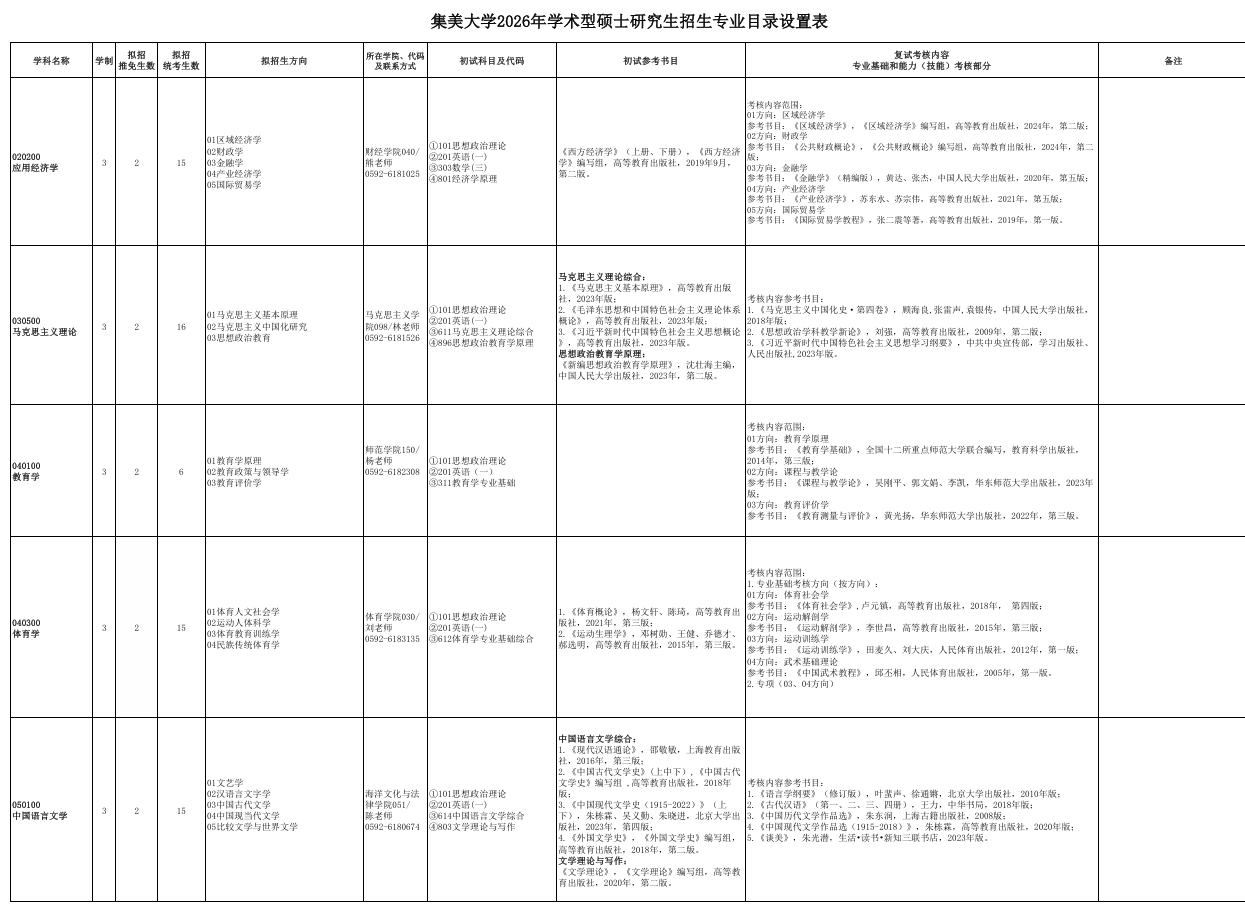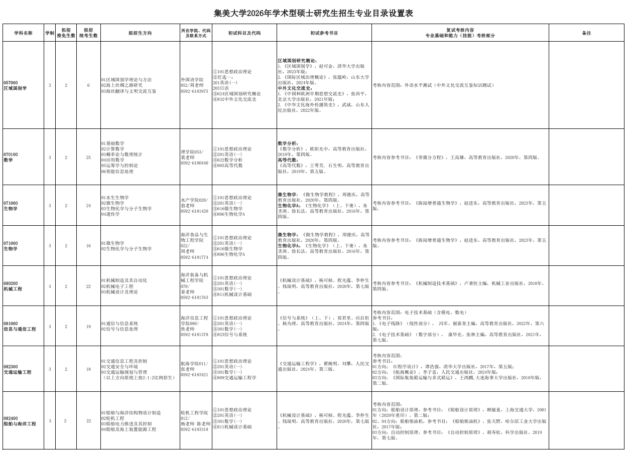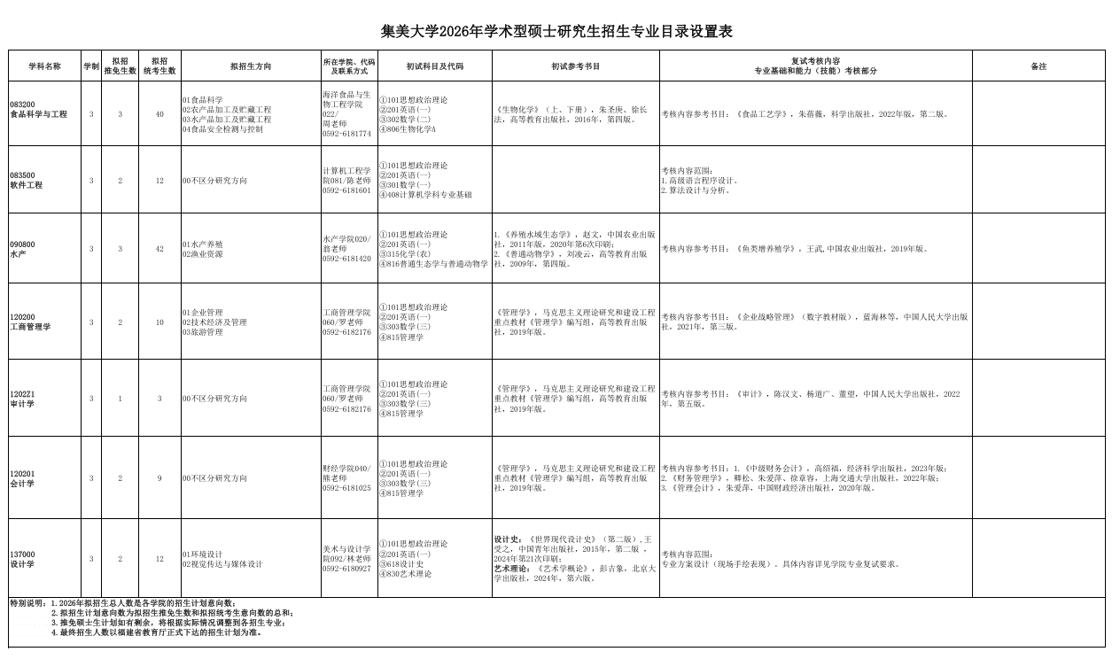 福建农林大学2026年硕士研究生招生专业目录注:本招生专业目录中预计招生人数为我校根据2025年实际招生总数的进行调整后的情况(含推免生、