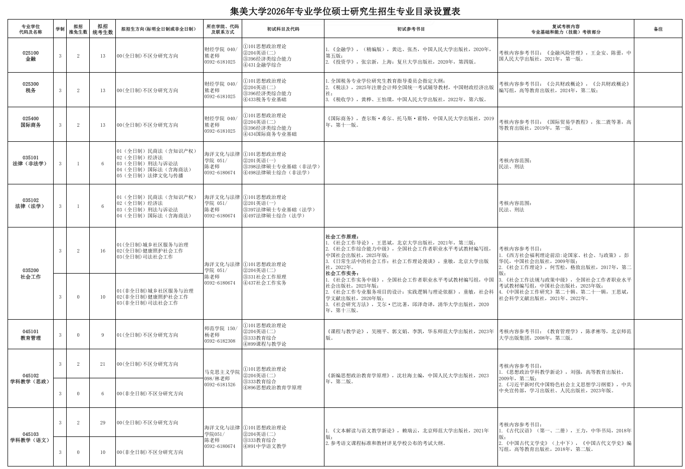 福建农林大学2026年硕士研究生招生专业目录注:本招生专业目录中预计招生人数为我校根据2025年实际招生总数的进行调整后的情况(含推免生