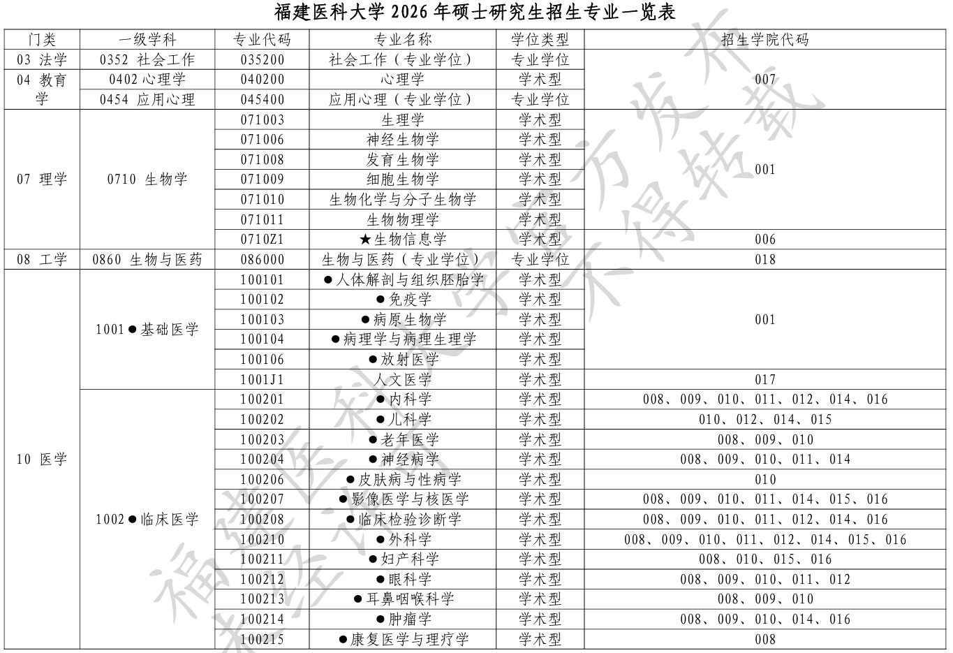 福建农林大学2026年硕士研究生招生专业目录注:本招生专业目录中预计招生人数为我校根据2025年实际招生总数的进行调整后的情况(含推免生、