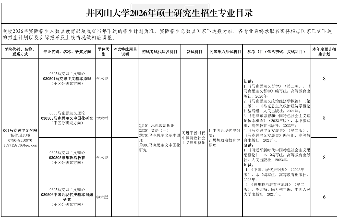 联系部门:研究生处 电话:(0795)3201680 联系人:易老师学院、学科专业(领域)研