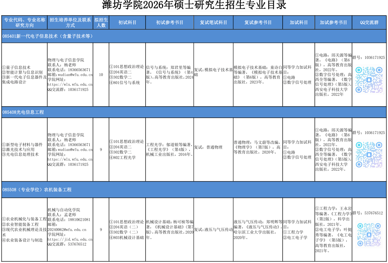 枣庄学院2026年硕士研究生招生专业目录招生院所(代码)及联系方式招生 专业专业 领域研究方向学习 方式学位类型