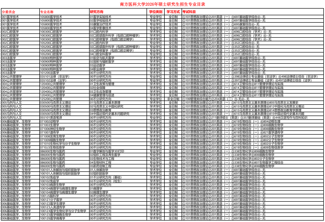 本文关键字: 研究生招生专业目录
