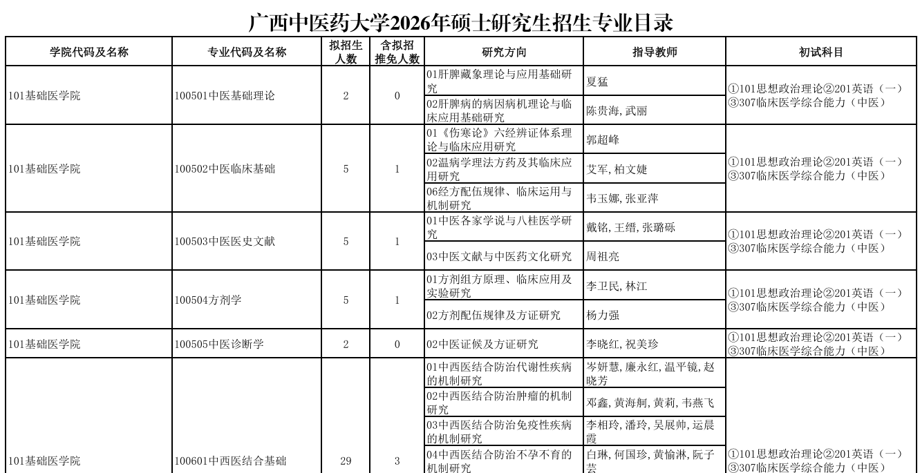 桂林理工大学2026年硕士研究生招生专业目录(请按学院查询)使用提醒:1 先选择学院,再进一步选择要看的内容。 2 我校各科目考试用时均为