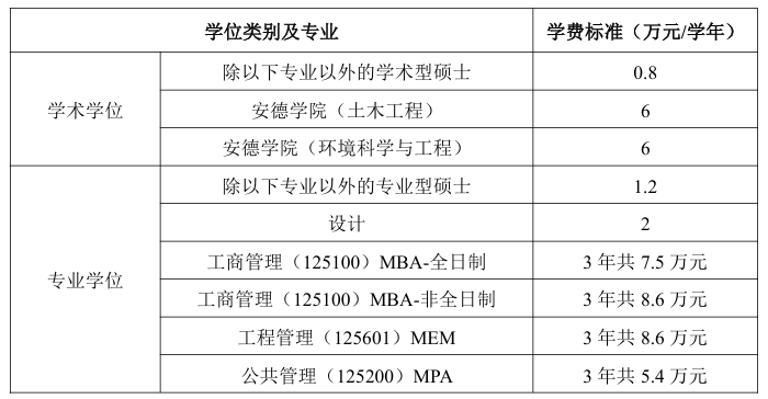 (一)非全日制硕士生学费标准与相同专业全日制硕士生学费标准相同,详见下表。