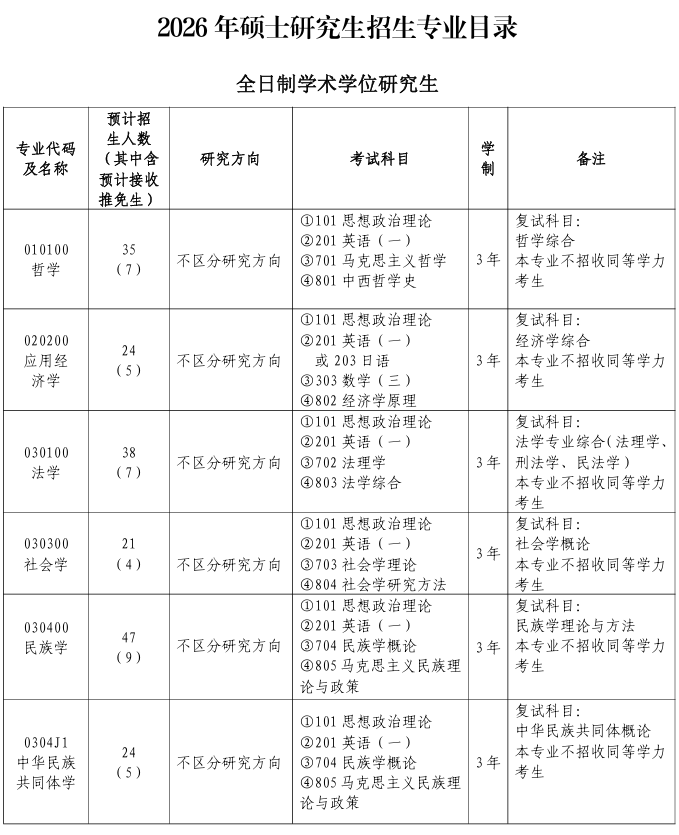 西南财经大学2026年硕士研究生专业目录1 本目录公布的招生计划为拟招生人数,学校及各专业实际招生人数将根据教育部当年下达的招生计划和生