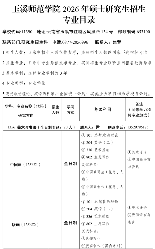 曲靖师范学院2026年硕士研究生招生专业目录002人文学院(拟招生14人) 专业代码及名称研究方向名称初试科目备注45103不区分