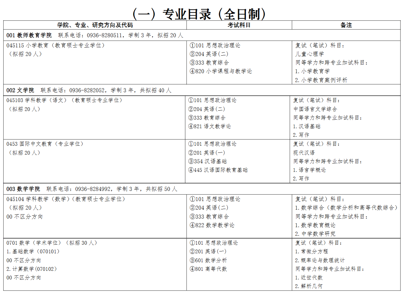 陇东学院2026年硕士研究生招生专业目录学校代码:10738 地址:甘肃省庆阳市兰州路45号 邮政编码:745000联系部门:研究生处 电