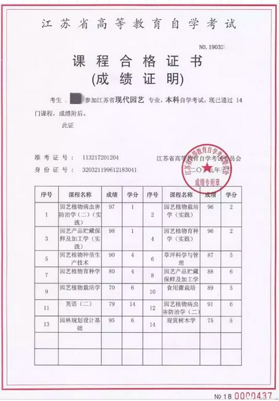 自考生成绩单示例