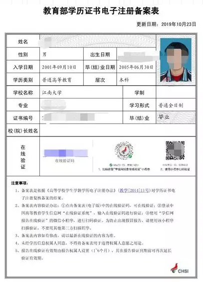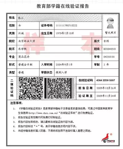 教育部学籍在线验证报告照片示例