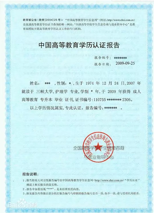 教育部学历认证报告照片示例
