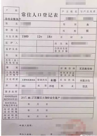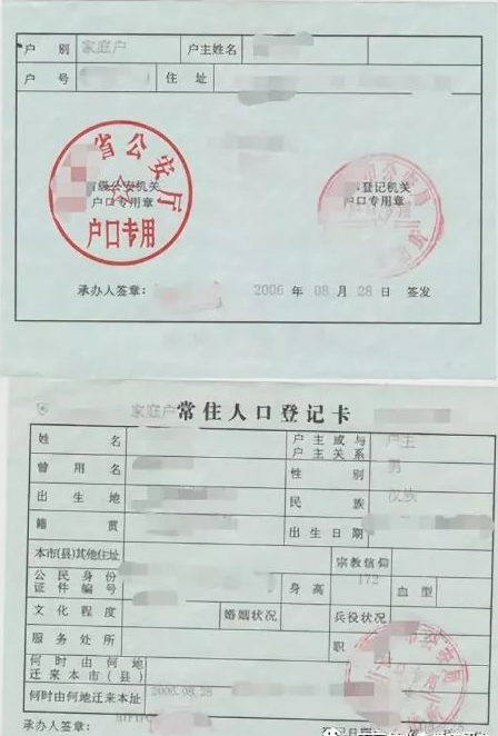 常州市户口本示例