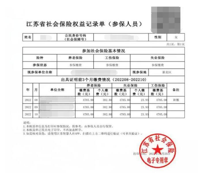常州市参保证明示例