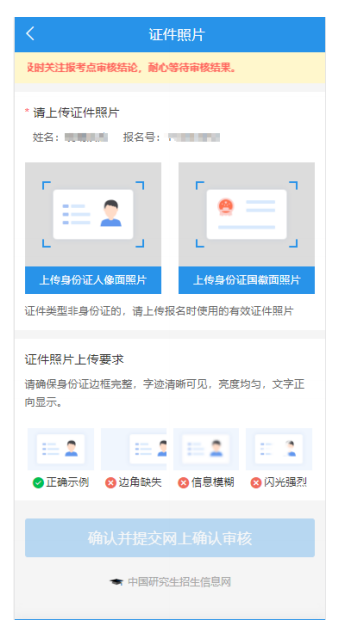 (1)身份校验不通过的考生。网上报名时,证件类型为居民身份证但身份核验未通过的,须上传身份证照片(人像面和国徽面),请确保身份证件边框完整,字迹清晰,亮度均匀。
