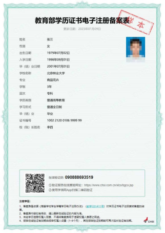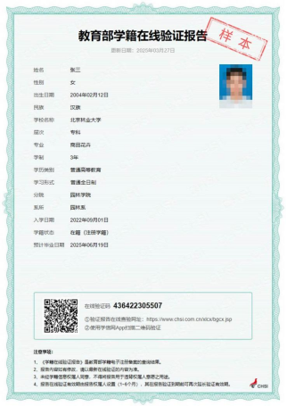 《教育部学籍在线验证报告》和《教育部学历证书电子注册备案表》样例: