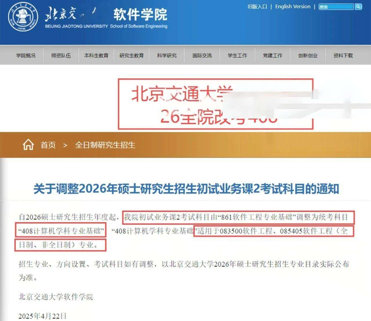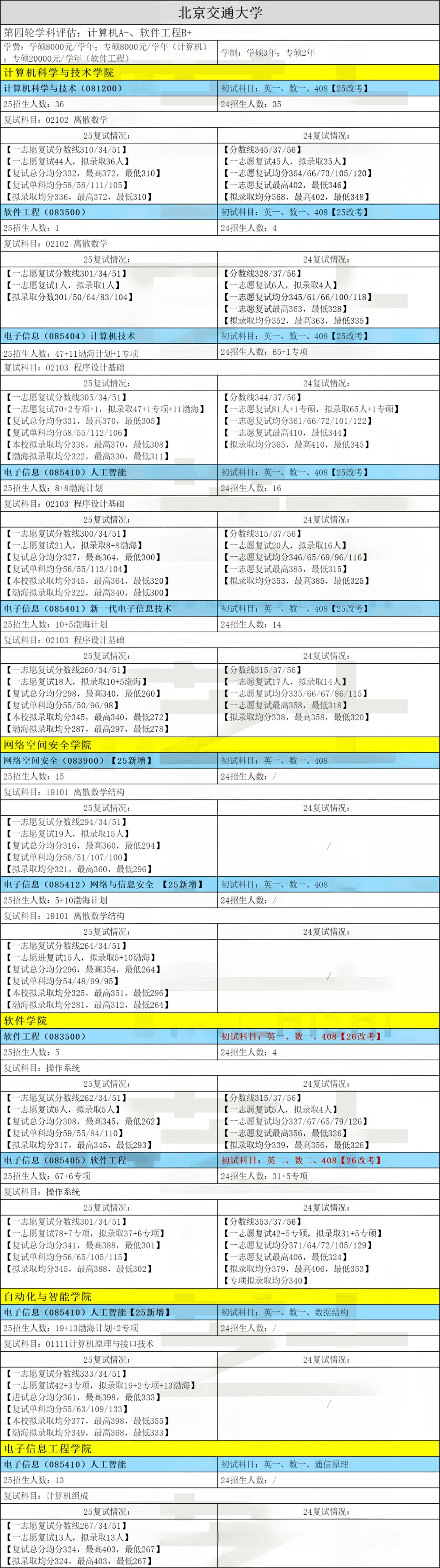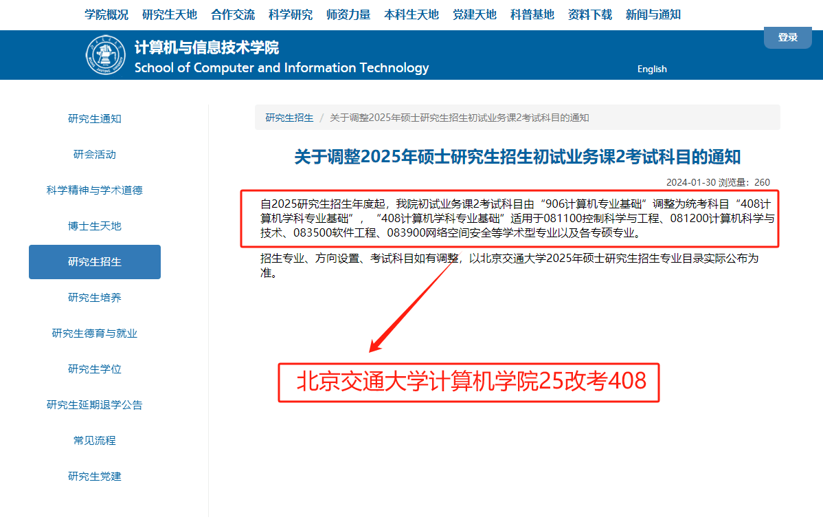 北京交通大学计算机学院、软件学院改考408