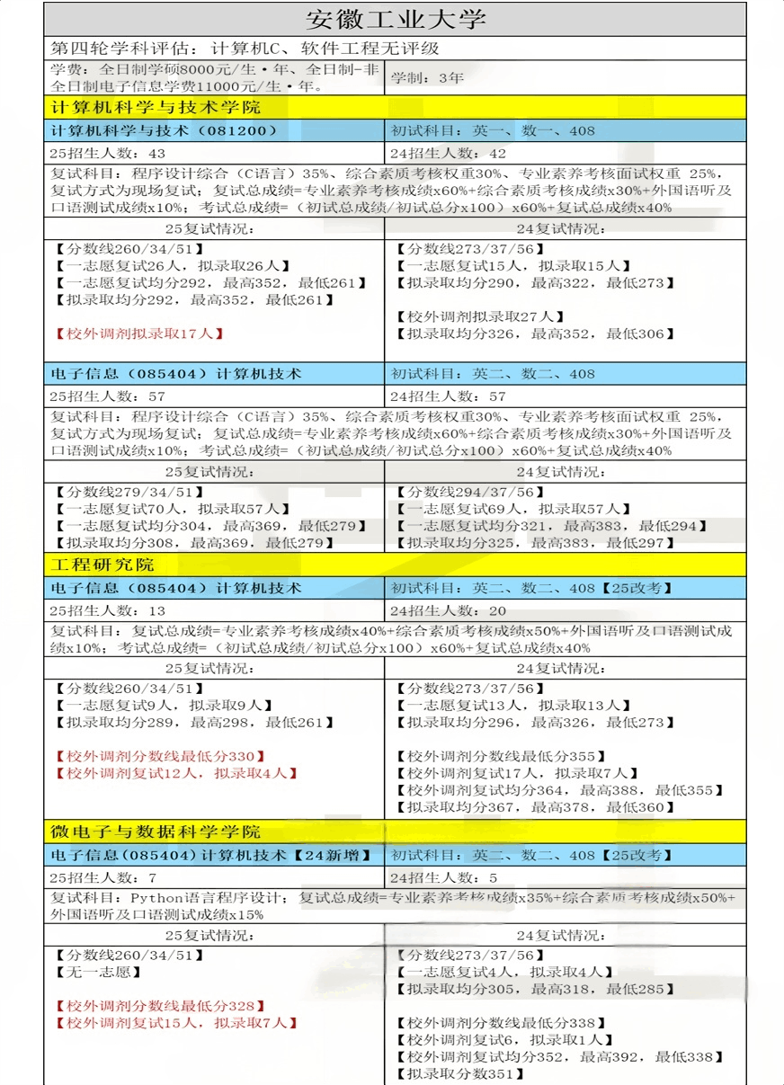 安徽建筑大学改考408 安徽建筑大学计算机考情统计 考情信息