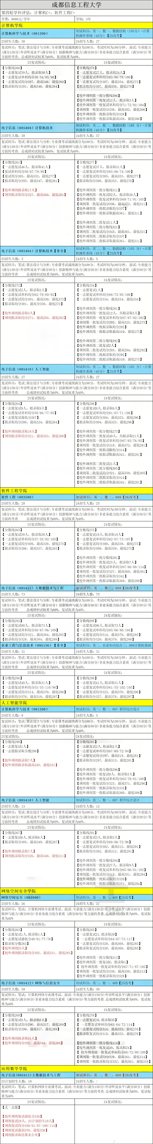 成都信息工程大学是四川省和中国气象局共建、四川省重点发展的省属普通本科院校。学校创建于1951年,1956年改制为中央气象局成都气象学校;1978年升格为本科院校——成都气象学院;2000年学校由中国气象局划转四川省,更名为成都信息工程学院;2001年原隶属国家统计局的四川统计学校整体并入;2015年更名为成都信息工程大学。第四轮评级:计算机C+,软件C+。