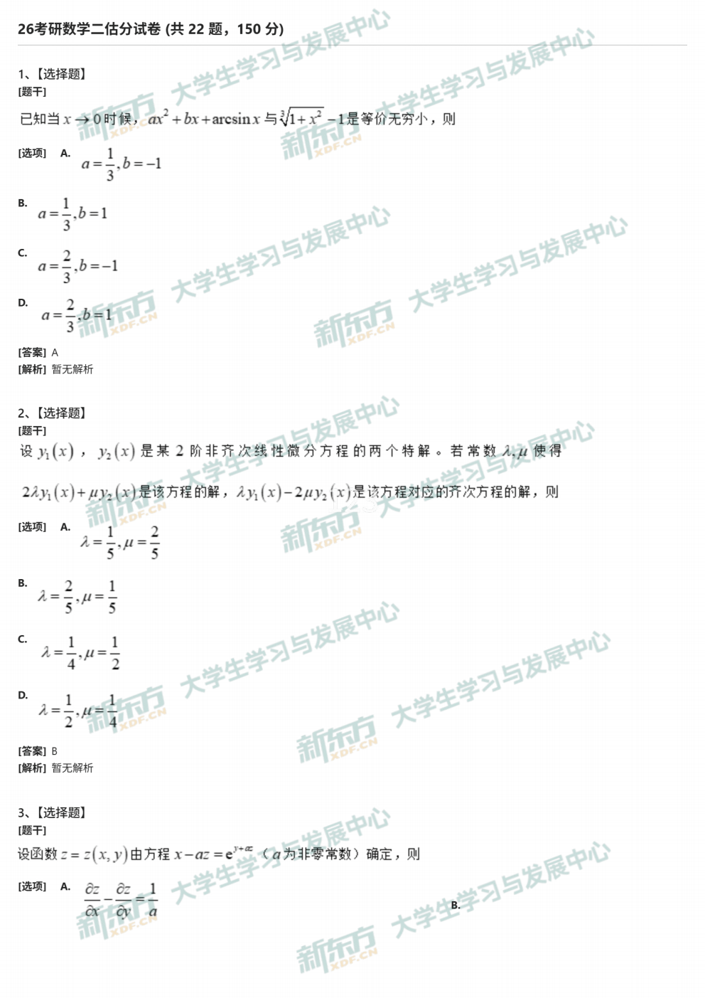 来源 : 新东方在线 2025-12-21 17:57:14 关键字 : 2026考研数学三真题,2026考研数学三答案