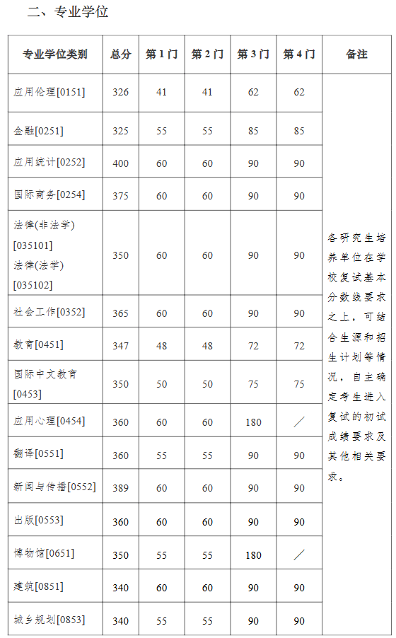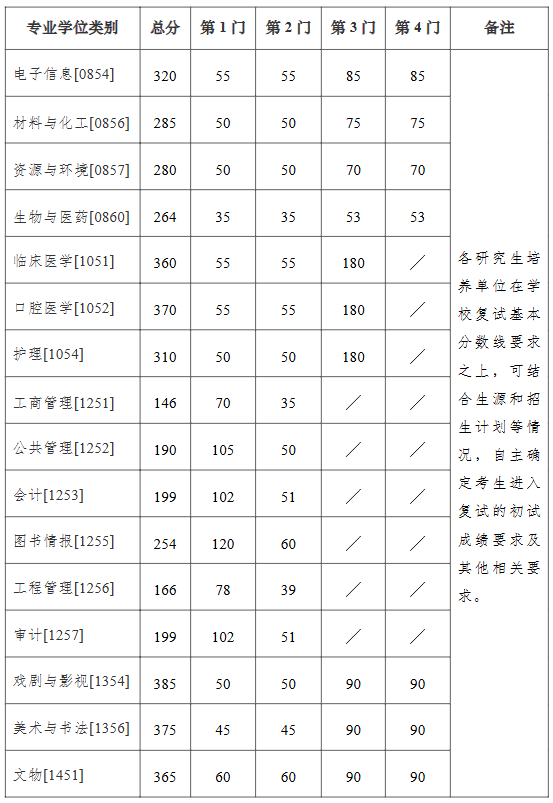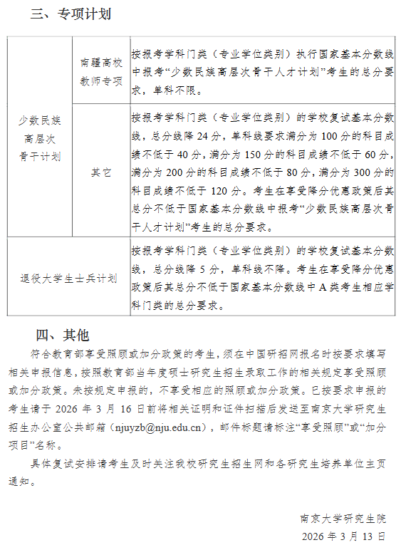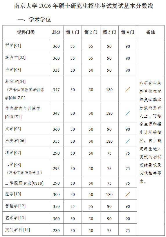 南京大学2026年硕士研究生招生考试复试基本分数线