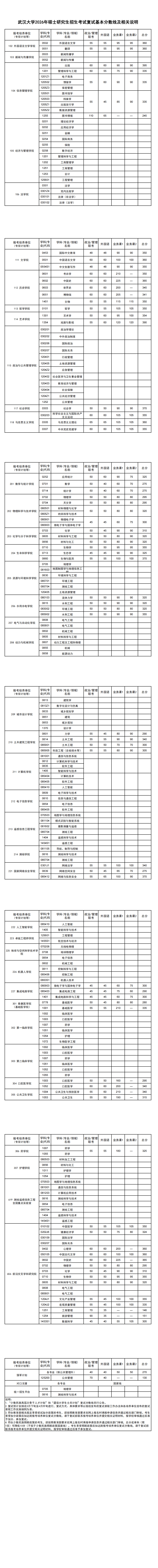 武汉大学2026年硕士研究生招生考试复试基本分数线