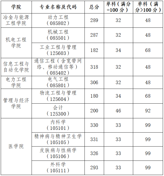 (2)B类国家线总分要求低于300分的学科门类和专业学位(工学、理学、医学、交叉学科):总分201分,单科(满分=100分)30分,单科(满分=150分)45分,单科(满分=300分)99分,一志愿上线考生共29人。