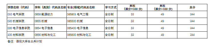 二、退役大学生士兵计划复试分数线: