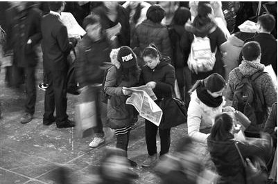昨日,国展,求职者在看招聘信息。当天,北京研究生专场招聘会在国展举行,提供近两万个职位供选择。 新京报讯 (记者温薷)昨天,今年最大规模高校毕业生招聘会在国展举行,1.9...
