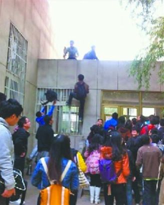 27日中午12点,山财大舜耕校区上演“疯狂占座”,教学楼大门玻璃被挤爆。28日,在山财大舜耕校区 3号教学楼,课桌上占座的字迹处处可见。 距离2014年考研还有2个多月,复习已进入冲...