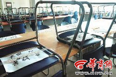 椅子粘桌上占座 考研童鞋霸气外露 宝鸡文理学院新校区图书馆四楼的自习室内,很多学生为了占座,纷纷将椅子倒扣在桌上,再用宽胶带将其紧紧绑在一起。7月13日上午,走进这间自习室,记者...