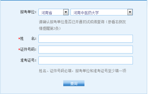 河南2017考研初试成绩查询入口开通,河南中医药大学分数可查。报考本研招单位的考生可登录研招网通过姓名、研招单位、证件号、准考证号查询成绩。为下一步复试调剂做好准备。更多其他省...