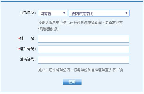 河南2017考研初试成绩查询入口开通,安阳师范学院分数可查。报考本研招单位的考生可登录研招网通过姓名、研招单位、证件号、准考证号查询成绩。为下一步复试调剂做好准备。更多其他省市...