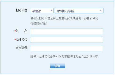 福建2017考研初试成绩查询入口开通,泉州师范学院分数可查。报考本研招单位的考生可登录研招网通过姓名、研招单位、证件号、准考证号查询成绩。为下一步复试调剂做好准备。更多其他省市...