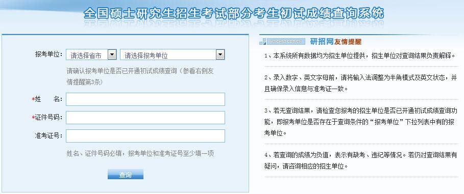 来源 : 研招网 02月15日 15:54 关键字 : 2017考研成绩查询入口 2017考研初试成绩