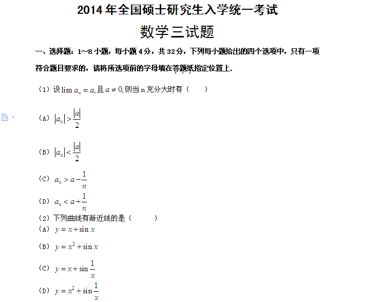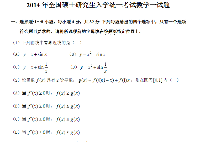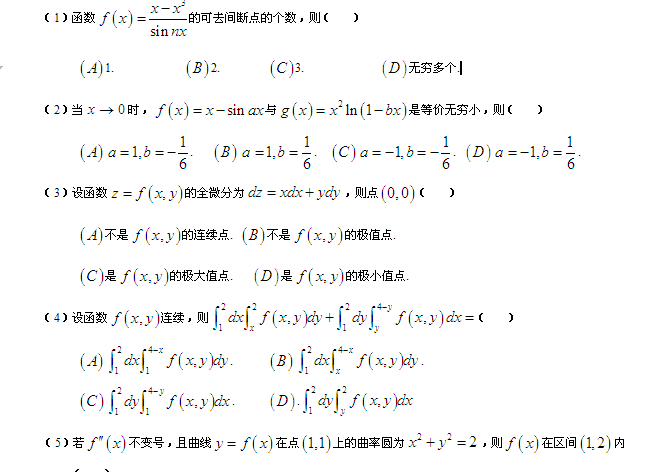 来源 : 网络 07月16日 16:08 关键字 : 考研高数题目