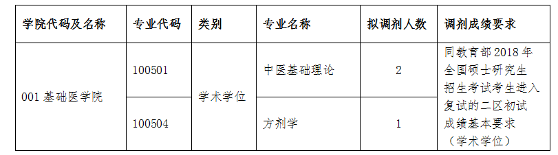 1.普通计划(含学术学位、专业学位)调剂基本要求 ⑴须符合我校招生章程中规定的调入专业的报考条件。 ⑵初试成绩符合第一志愿报考学科(专业)在A类地区的《全国初试成绩基本要求》。...