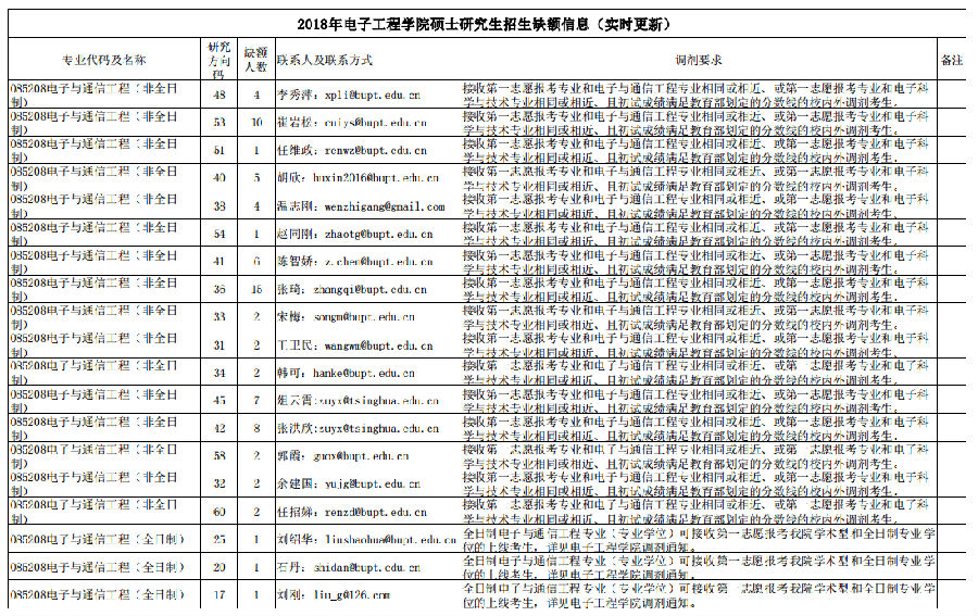 各位考生: 我校2018年硕士研究生招生部分专业现有少部分缺额,仅接收校内一志愿考生调剂,具体专业如下:学院专业联系电话邮箱城市经济与公共管理学院区域经济学010-83952250xwk0318...